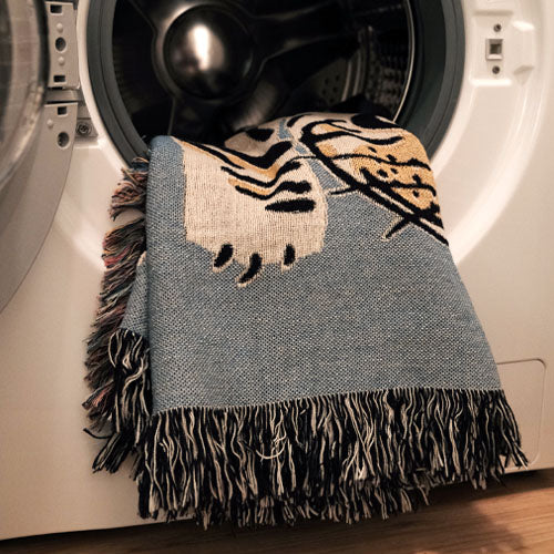 We recommend washing the blanket in the washing machine using gentle cycle and cold water only. Do not wash it with other clothing materials that may snatch the blanket (it's woven). You can hang dry it or machine dry it using the gentlest cycle.